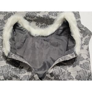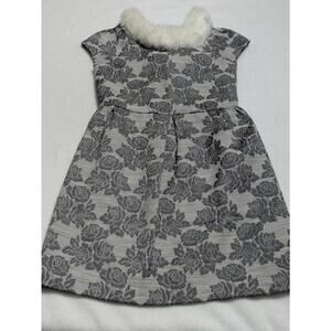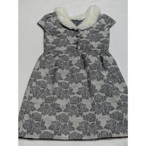 Janie and Jack Pirouette Petals 8 Floral Jacquard Dress Faux Fur Collar Gray