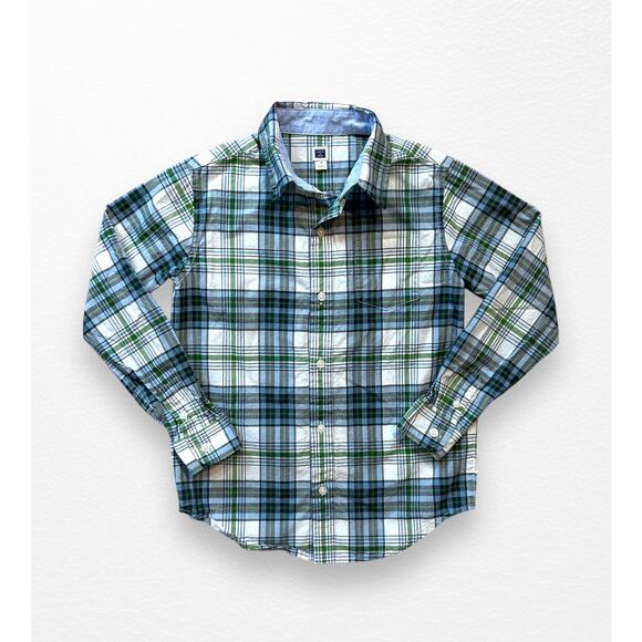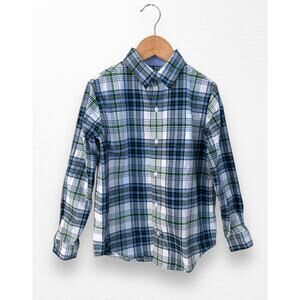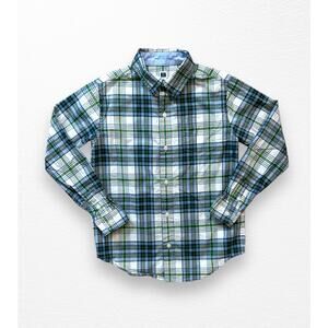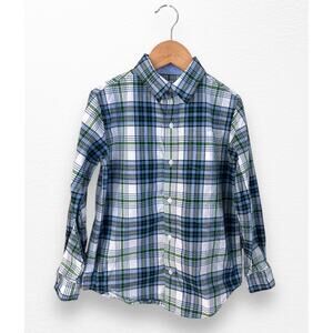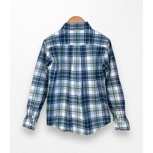 Blue and green plaid poplin shirt from Janie and Jack in size 7. Very good pre-owned condition.