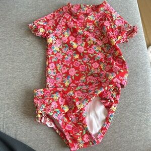 Janie and Jack Red Ditsy Floral Rashguard Swim shirt Girls Size 3/6m
