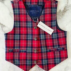 Janie and Jack Red Plaid Button Down Shirt with Vest