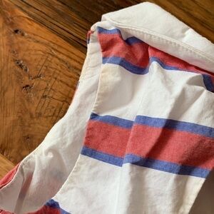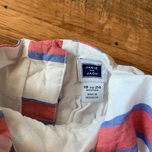 This charming sleeveless sundress by Janie and Jack features a vibrant red and blue color palette, perfect for casual outings. The pleated design adds a touch of elegance, while the crew neck and peter pan collar offer a classic look. Ideal for warm weather, this dress combines style and comfort effortlessly.
