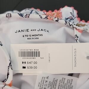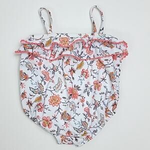 Janie and Jack Ruffled Floral Print White and Pink One Piece Swimsuit Baby 6-12M