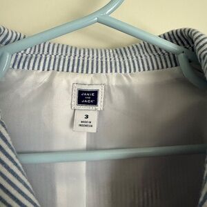 Elevate your little one’s style with this classic seersucker blazer from Janie and Jack, size 3. Ideal for a summer wedding, party, or special photoshoots.