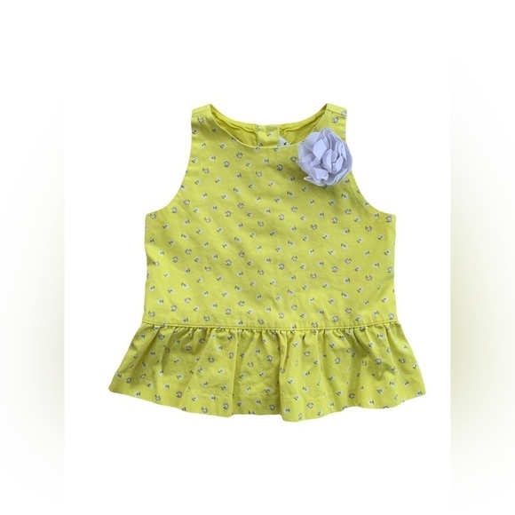 Janie and Jack size 4 yellow peplum tank top with white flower.