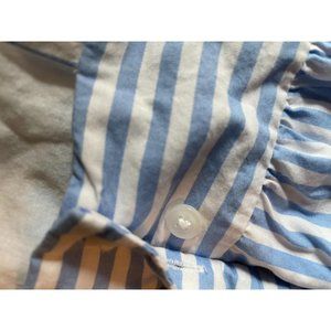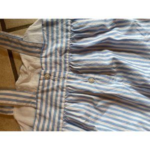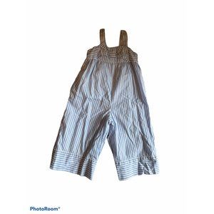 This is in good condition as pictured. Blue hue and wide-leg silhouette striped jumpsuit. Finished with bow detail.