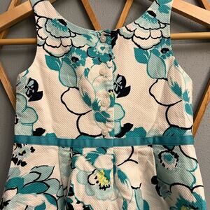 Janie and Jack teal floral textured sun dress. Button detail on back. Size 5