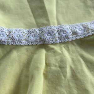 Charming yellow dress with delicate white lace accent. Perfect for casual wear.