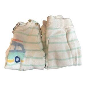 Janie and Jack Sweater White w/sky blue strips Van on Front V6 to 12 mths 2pc