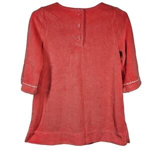 This Janie and Jack Swimsuit cover-up is an adorable staple for your little toddler girl this Summer! Made from terry cloth, it can be worn over a wet bathing suit to dry off and keep warm, or worn alone as a dress. It features 3/4 sleeves, a V-neck, an embroidered design at the neckline and at the base of the sleeves, side slits, and buttons at the back of the neck. So cute and perfect for this time of year! Size 18-24 months. Approximate Measurements: Pit to Pit -12"; Length 17.5".