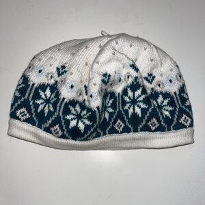 Janie and Jack Teal and White Snowflake Fair Isle Knit Hat