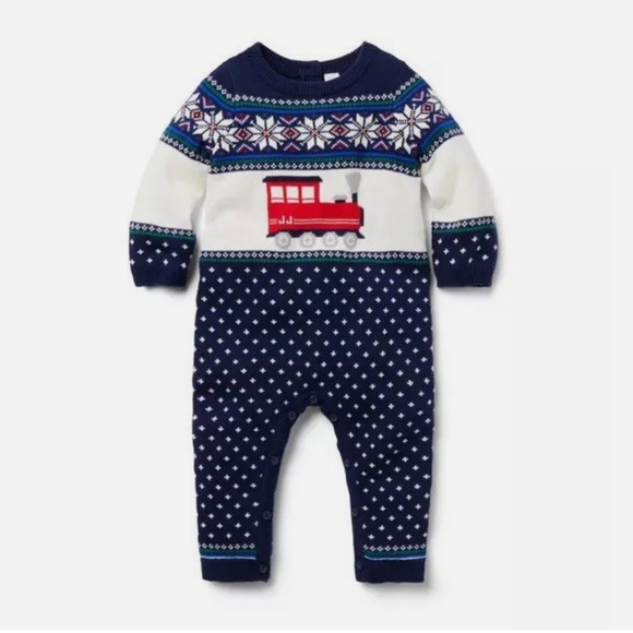 Janie and Jack Train Fair Isle Train Sweater Romper 24M Knit Holiday Christmas