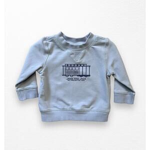 Pale blue crewneck sweatshirt from Janie and Jack in size 3-6 months. Features a graphic of a trolley car and reads “Janie and Jack, San Francisco Est 2002”. EUC.