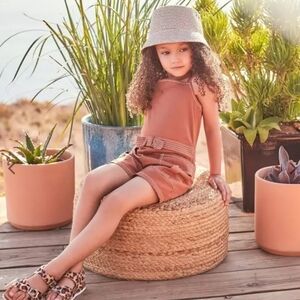Janie and Jack Twill Contrast Stitch Romper Sz 7