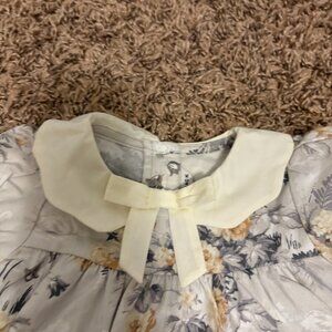 Janie and Jack Vintage Feel Dress 3-6 Months Gray Swan Floral Print Collared NEW