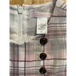 Keywords: Janie and Jack, girls dress, sleeveless, pleated front, multicolor, plaid, knee length, size 4T, round neck, button closure, decorative buttons.