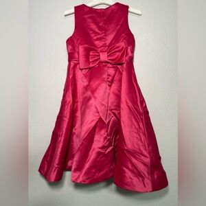 275. Janie and Jack WINTER BRIGHTS Hot Pink Satin Dress W/ Bow & Pockets 4 Years