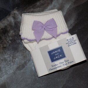 Janie and Jack White Cuff Socks W/Purple Box Size 0/3 Months Girl's NEW