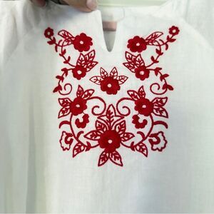Janie and Jack White Dress with Red Embroidery Tunic Girl's Dress Size 7 is gently used on a trip to Mexico but in great condition.