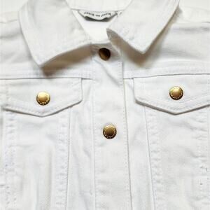 Stylish white jacket. Features gold buttons. Perfect for any occasion.