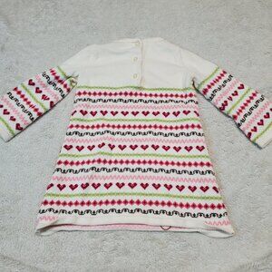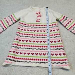 Janie and Jack White Pink Heart Cottagecore Knit Sweater Dress Girl 6 - 12 month