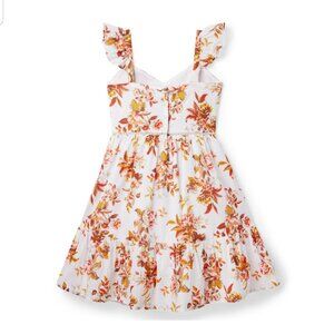 The dress showcases a beautiful white base adorned with orange floral accents, perfect for casual or resort wear.