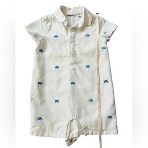 Janie and Jack White Romper With Blue Embroidered Fish Size 6-12 Months