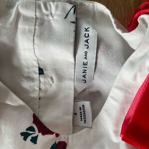 This elegant blouse from Janie and Jack features a charming white base adorned with vibrant red floral prints. The puff sleeves and velvet bows over the shoulders add a touch of romance and sophistication, making it a standout piece in any wardrobe. Perfect for those who appreciate a blend of classic style and modern flair.
