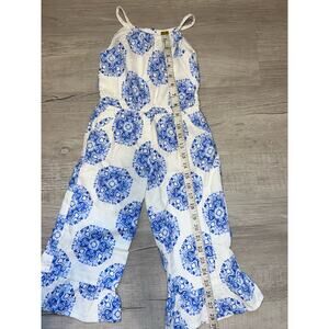 Janie and Jack X Rachel Zoe Blue and White boho wide leg eyelet jumpsuit size 4