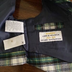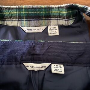 Super Gorgeous Janie and Jack Matching Set two Pieces. Vest at beautiful green and Navy blue color with pockets sides and belt details in the back and pants with pockets sides and elastic bands inside. New with out tag. Size 6-12 Months