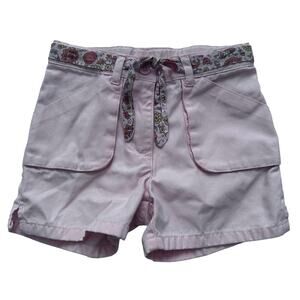 Pink Floral belt Adjustable waist tabs Pockets Chino Shorts