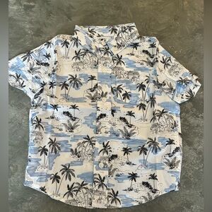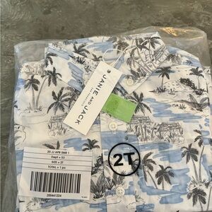 Janie and Jack blue short sleeve cotton lightweight button up size 2T palm print