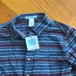 Janie and Jack flannel blue striped shirt Size 8 NWT