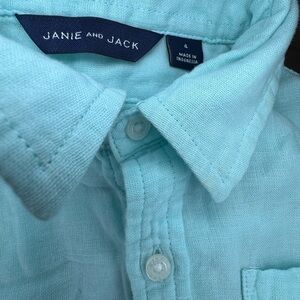 Janie and Jack mint green cotton button down shirt sz 4 k140