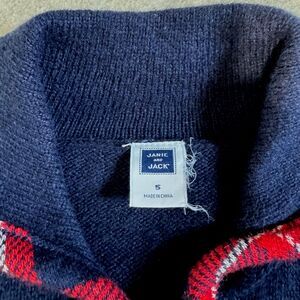 Janie and Jack navy red plaid trim knit poncho sweater Kids 5 cozy fall classic