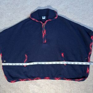 Janie and Jack Navy Red Plaid Trim Knit Poncho Pullover Classic Preppy.