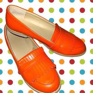 Janie and Jack orange loafers with fringe style design on top. Ntn!