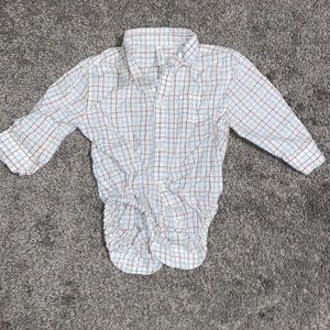 Very cute button up style onesie, layered with plaid overalls. Both in like new condition with no flaws! Ships next day! Don’t be afraid to send offers or bundle to save!