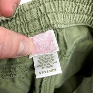 Janie and Jack pants olive with embroidered flowers on pocket size 3-6 months