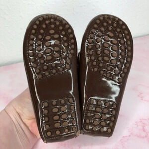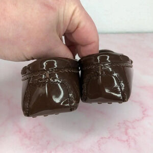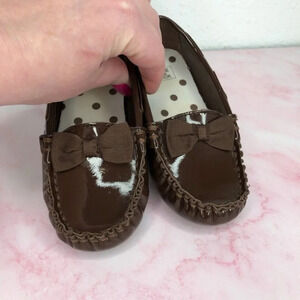 Janie and Jack shoes bow moccasins brown patent leather size 8 toddler