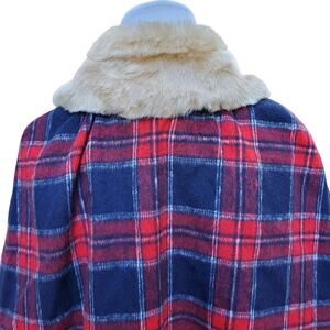 Janie and Jack the Tartan Holiday Cape Red Blue Plaid Faux Fur Collar Sz 7-8