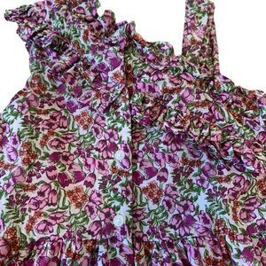 Her new favorite for photo-ops and little summer get-togethers, this floral dress with a cold shoulder and ruffle detail.