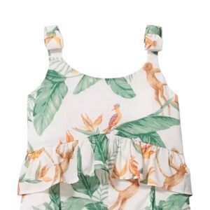 Janie and Jack Girl's Romper Paradise Palms Sz 3T Parrots Monkeys Jungle Summer
