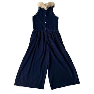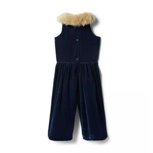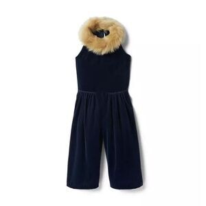 Janie and Jack Velvet Faux Fur Collar Jumpsuit girl’s size 7 Navy Blue