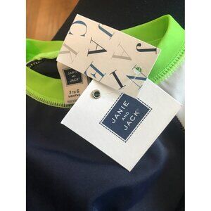Rashguard navy and white with neon green trim. Brand new with tags size 3-6 mos.