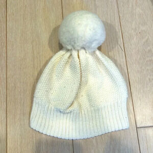 Janie and jack white Pom Pom beanie hat. Size 6-12 months. Knitted material. Has piling. Perfect for your little one during the winter.