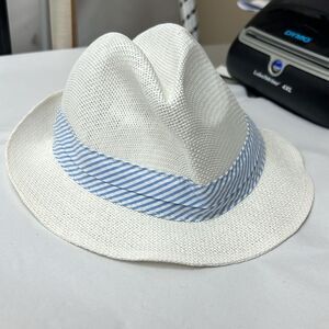 Janie and Jack 100049183 White Straw Fedora Hat NWT size 6-12 months