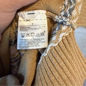 This elegant turtleneck sweater from Janie and Jack features a sophisticated blend of tan and white hues, perfect for adding a touch of class to your wardrobe. The cozy knit material and stylish cowl neck design ensure warmth and comfort, making it an ideal choice for chilly days. Its unique Fair Isle pattern adds a charming detail to this timeless piece.