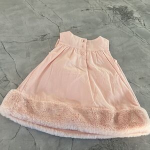 Faux fur trim on bottom. Button closure on back. 3-6M