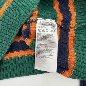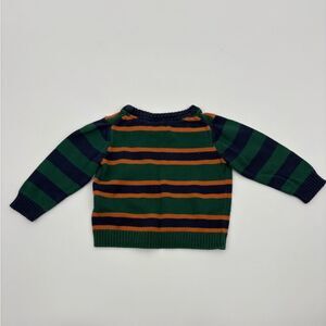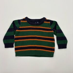 Chic sweater with navy, green, and orange stripes. Ideal for everyday wear.