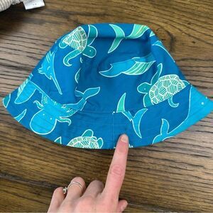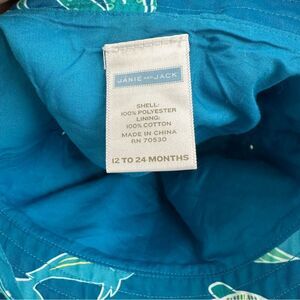 Janie and Jack size 12-24mo darling hat with chin strap- in excellent like new co diction but has one tiny spot as shown. From Ocean Quest line.